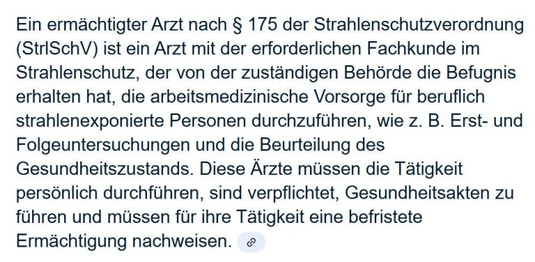 Zwar sei jeder in Strahlenschutzbelangen ermächtigte Arzt zugleich auch ein Facharzt, doch umgekehrt gelte das nicht. Dieser Spezialarzt stelle nur eine winzige Untergruppe aller Fachärztinnen und Fachärzte dar.
