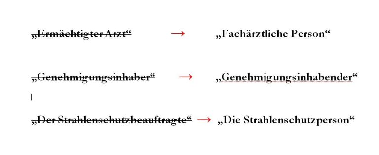 „Der Strahlenschutzbeauftragte führt ein Amt aus, das unabhängig ist vom biologischen Geschlecht. Allein seine Funktion steht im Vordergrund. Gendern ist hier unangebracht, weil es vom Aufgabengebiet ablenkt. Vor allem aber muss ein sensibler Bereich wie der Strahlenschutz rechtsverbindlich und klar in schriftlichen Anweisungen formuliert sein. Wird zum Beispiel der juristische Begriff ,ermächtigter Arzt‘ durch ,fachärztliche Person‘ ersetzt, ist das Klarheitsgebot verletzt.“